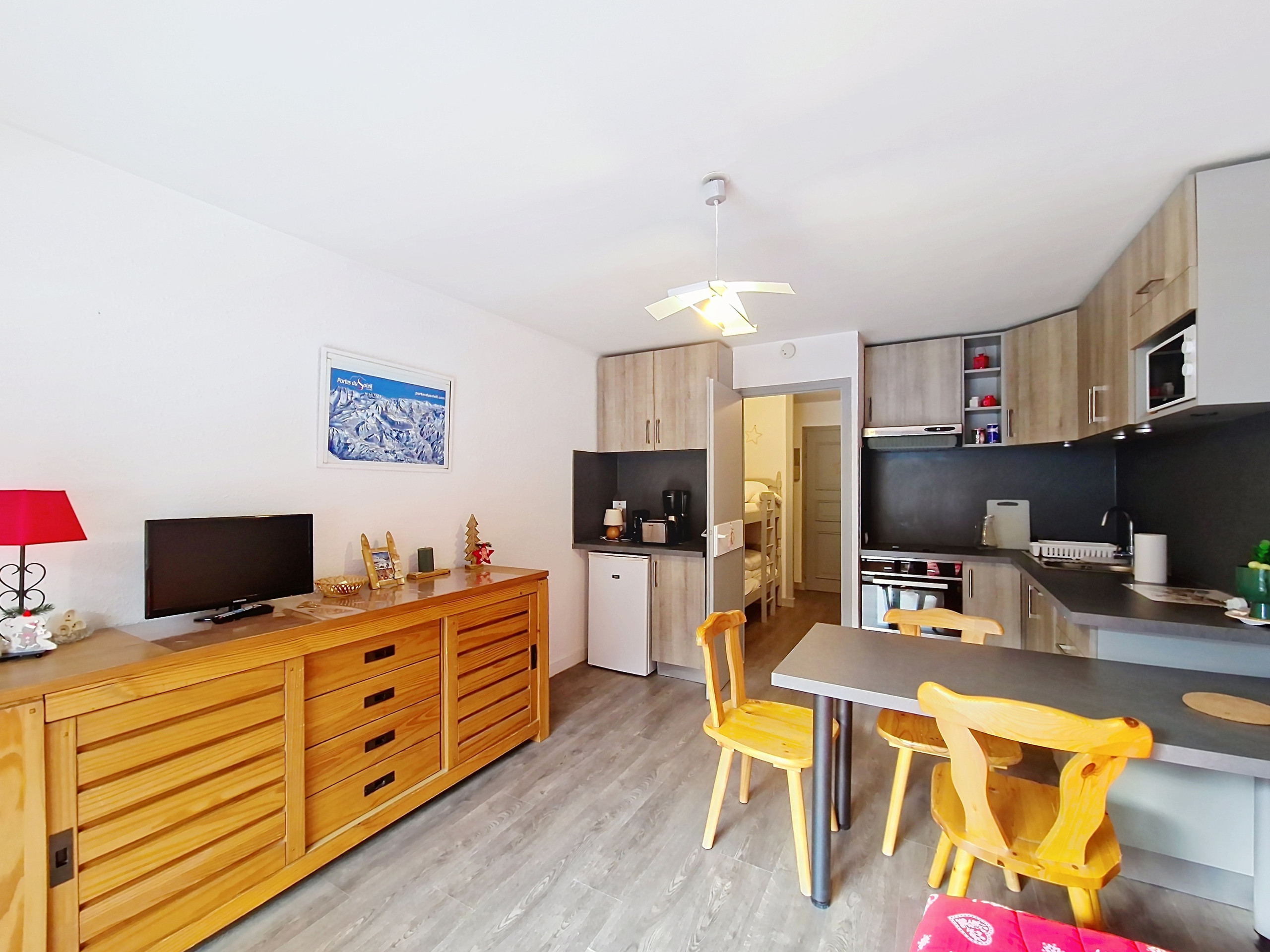 Charming 2-star 24 m2 studio on the 1st floor. Living room with flat-screen cable TV. Open-plan kitchen equipped with ceramic hob, fridge, dishwasher, freezer, filter coffee machine, oven, kettle, microwave, and toaster.