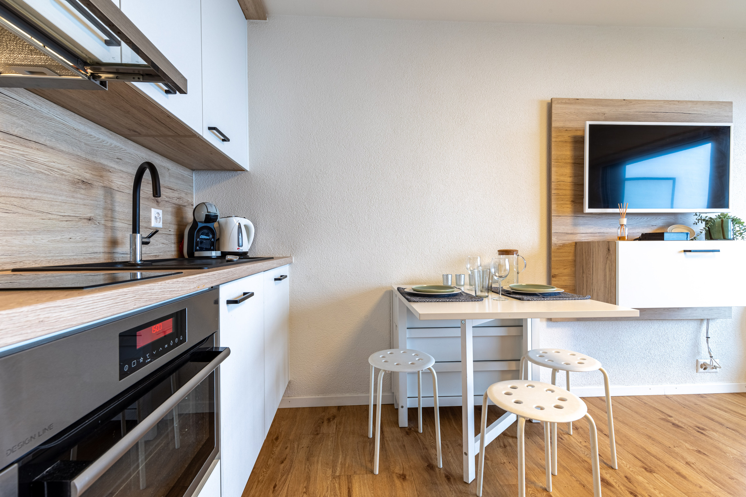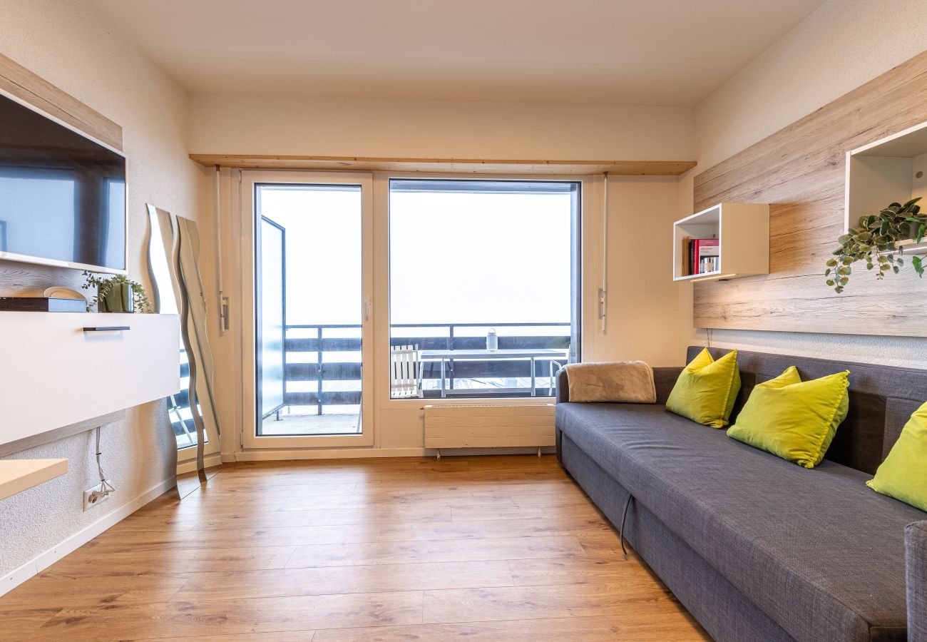 Comfortable 2* studio of 20 m2 on the third floor. Equipped kitchen open to the living room with sofa bed for 2 people and cable television. Balcony with unobstructed view of the Rhone Valley. Hall with a folding bunk bed for 2 people.